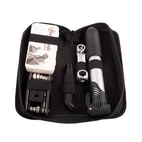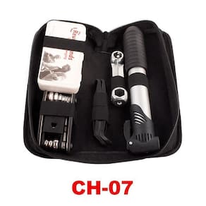1x Bolsa 1x Kit Chaves 1x Chave de boca dupla 1x Mini Bomba de ar 1x Estojo com kit reparo 2x Espátulas