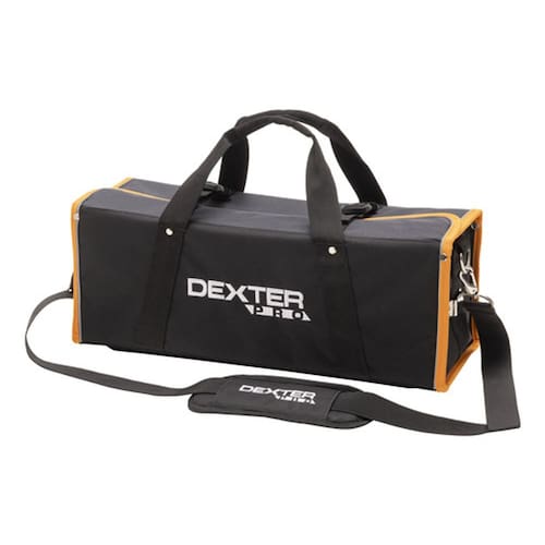 Feita para profissionais que valorizam a organizacao e a praticidade, a Bolsa para Ferramentas Dexter Pro LT0008 e o acessorio perfeito para transportar e armazenar suas ferramentas. Com dimensoes de 50 x 18 x 18 cm, esta bolsa de ombro e fabricada em poliester de alta qualidade, um material duravel e resistente, ideal para o uso diario. Seu design em preto solido e tanto elegante quanto funcional, com um fecho de ziper em metal para seguranca extra.