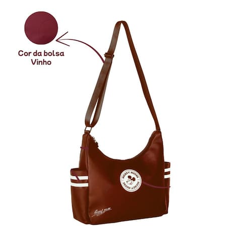 Bolsa Hobo Média Mickey Mouse Sport College Moderna Urbano - Cor: Vinho