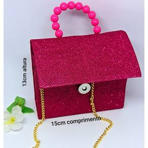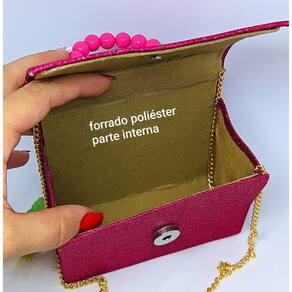 Material Premium: Feita em tecido gliter, a bolsinha brilha com charme e sofisticação.