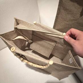 Material: Poliéster, Juta Sintética, e Alças de Madeira Bambu
