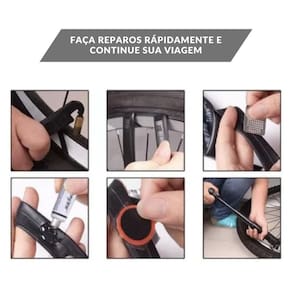 Sabemos que furar pneus é um risco frequente e precisamos ter itens em mãos que nos dê suporte quando os pneus furam. Agora esse problema estará resolvido, uma vez que o kit conta com todos os itens necessários para o reparo das câmaras de ar.