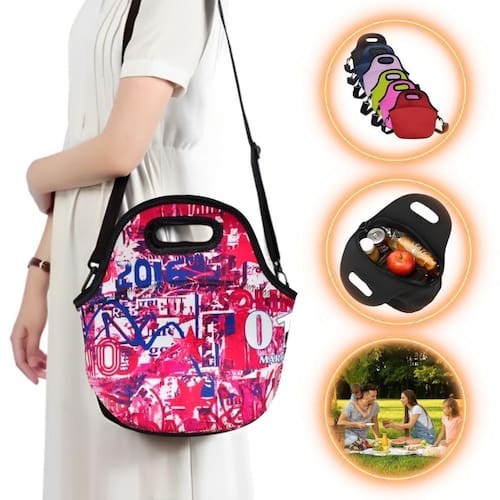 Dimensão: 30cm altura com a alça de mão x 30 largura x 18 cm largura do fundo da lancheira