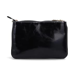 Bolsa tiracolo de tamanho pequeno com acabamento macio e formato estruturado.. Fechamento principal em zíper de metal.. Possui dois bolsos externos embutidos na parte frontal e posterior da bolsa, com fechamento em botão imã.. Alça tiracolo de couro com regulagem de altura e com detalhe de correntes, fixa no produto.. Detalhe para aplicação da placa luas com forração em couro na parte frontal da bolsa.. No interno, bolso sem zíper.. L: 24cm x A: 16cm x P: 8cm..