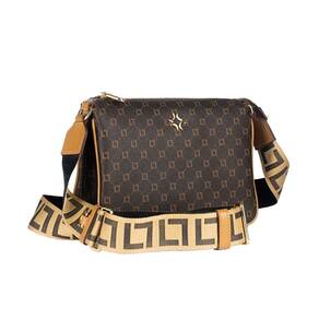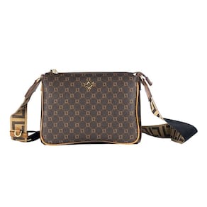 Bolsa tiracolo de tamanho pequeno com formato estruturado. Fechamento principal em zíper de metal. Alça tiracolo de gorgorão com regulagem de altura, fixa no produto. Detalhe para puxador de couro com enfeite LL oval. No interno, a bolsa possui duas divisórias formando três compartimentos, além de bolso sem zíper.