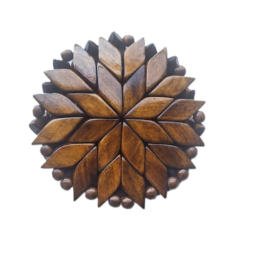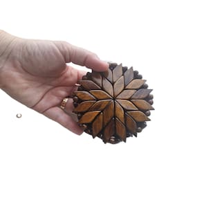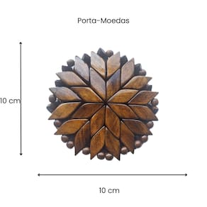 Bolsa Artesanal de Madeira, Marrom Clara, Redonda, tipo Carteira, Porta-moedas