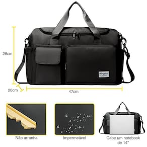 Seja para suas viagens, idas à academia, práticas esportivas ou momentos de lazer, a Bolsa Impermeável Lorben é o acessório ideal para acompanhar o seu ritmo dinâmico . Com um design moderno e cores sofisticadas, ela não apenas oferece espaço suficiente para todos os seus pertences, mas também possui compartimentos específicos para armazenar seus tênis e roupas molhadas ou sujas.Fabricada com materiais de alta qualidade, a Bolsa Impermeável Lorben é lavável, além de resistente ao desgaste e riscos, garantindo sua durabilidade ao longo do tempo. Além disso, sua parte traseira pode ser acoplada à sua mala de rodinhas, tornando-a uma parceira indispensável em suas viagens. Tanto para homens quanto para mulheres, ela é a escolha unissex perfeita, tornando-se também uma excelente opção de presente para quem valoriza praticidade e estilo.A alça transversal removível e regulável proporciona o máximo de conforto e praticidade durante o uso. Com diversos bolsos estrategicamente posicionados, essa bolsa foi projetada para facilitar a organização dos seus pertences:1 Bolso principal com zíper bidirecional1 Bolso interno com forro impermeável e fechamento por zíper1 Porta tênis com zíper1 Bolso lateral com fechamento por aderência1 Bolso frontal com zíper1 Bolso frontal com fechamento por aderência1 Bolso traseiro traseiro com zíperSeu amplo espaço interno de aproximadamente 26,32 litros e capacidade de carga de até 10 kg permitem que você leve consigo tudo o que precisa. ::DICA::Para garantir uma vida útil mais longa à sua Bolsa, é importante evitar o uso de peso além do suportado pelo produto e evitar segurá-la por apenas um lado da alça. Seguindo essas recomendações simples, você poderá desfrutar da sua Bolsa por muito mais tempo.Marca: LorbenMaterial: Fibra de poliéster, poliamida, plástico, metalCapacidade média: 26,32 Litros / 10 kgInclui:1 Bolsa MalaDimensões do produto:Largura: 47 cmAltura: 28 cmProfundidade: 20 cmComprimento da alça de ombro: ajustável até 100 cmPeso do produto: 435 gTamanho da embalagem: 50x28x5 cmPeso da embalagem: 450 gCódigo do produto: GT6249Imagens ilustrativas. As tonalidades podem variar. Os produtos são medidos manualmente, podendo haver pequenas variações nas medidas.