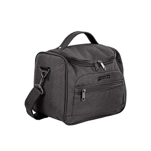 A linha Ultralight Hug atende as necessidades de viajantes que carregam muitas malas e precisam de praticidade no deslocamento. Com um sistema que permite acoplar todos os itens da coleção, você transporta a frasqueira pela alça carona, junto com o carrinho da mala. Se preferir, pode usar a alça transversal removível e ajustável. A estrutura de poliéster é leve e resistente e tem bolso frontal e uma abertura central, com divisórias e bolsos internos.