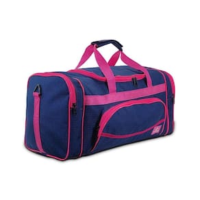 Bolsa mala sacola bagagem mao viagem passeio media Cor: Azul escuro/ PINK Bolsa sacola de mão acompanha você nos passeios ou viagens rápidas como feriados prolongados ou final de semana, tamanho médio mas muito espaçosa para guardar roupas com medidas aproximadas das malas de bordo podendo ser levada em bordo quando não está muito cheia já que é uma bolsa maleável porém resistente e alta costura. Possui bolso frontal e bolsos laterais o que facilita e organiza a guarda de pequenos objetos e documentos, alça de mão e tiracolo para ombros deixa as mãos livres.
