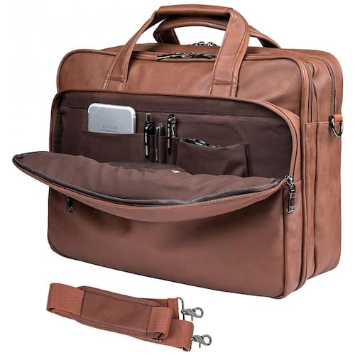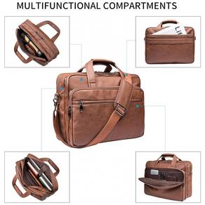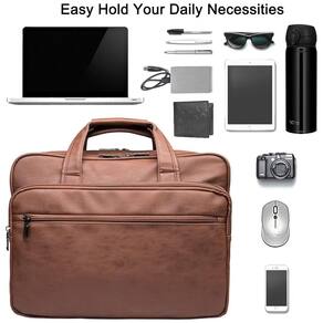 Organizador de vários compartimentos a bolsa para laptop de negócios, incluindo 1 compartimento principal para laptop de , 1 compartimento de arquivo para colocar facilmente seus documentos, revistas e livros, 1 bolso traseiro com zíper, 2 bolsos frontais com zíper para canetas, chaves, cadernos, cabos, mouse e outros itens pequenos.