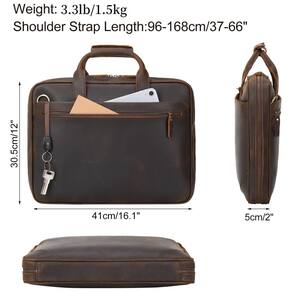 Design fino e de humanização Ultra fina com cerca de 2 de largura, a bolsa para laptop é mais leve do que outras. Design de abertura de 180 conveniente para você alcançar o item rapidamente. Com alça acolchoada ajustável e destacável, a bolsa carteiro pode ser transportada com menos esforço, podendo ser convertida de bolsa para bolsa transversal ou bolsa de ombro. Você pode usá lo como pasta de advogado, bolsa para laptop ou bolsa casual. O design clássico é perfeito para pessoas de negócios. Full Grain Leathe Esta maleta para laptop é feita de couro de vaca real de de espessura processado com tecnologia de couro de cavalo maluco, a textura natural do couro de vaca pode ser sentida. A característica diferenciada do couro crazy horse é seu visual retrô com riscos desordenados na superfície no início, mas o couro fica mais brilhante com o aumento do tempo de uso surpreendentemente. Este tipo de bolsa de couro goza de popularidade devido à durabilidade e resistência por décadas. YKK Zíper e Acessórios de Qualidade Fecho de zíper de metal YKK com controles deslizantes duplos, que pode suportar 1000 vezes o teste de força de tração, mantém seus itens s e à mão na maleta de couro marrom. Hardware de metal de bronze resistente, forro resistente a rasgos, costura requintada por artesãos qualificados garantem a longevidade da bolsa de trabalho masculina. Almofada de couro de flor integral em alças são confortáveis para suas mãos Marca: Não Informado