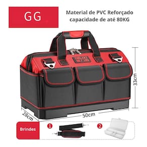 Bolsa Maleta de Ferramentas com Fundo Reforçado - Organização e Durabilidade Garantidas Se você busca praticidade e resistência para suas ferramentas, encontrou a solução ideal Apresentamos nossa Bolsa Maleta de Ferramentas com fundo reforçado, projetada para atender às necessidades dos profissionais mais exigentes. Confira as características que fazem desta bolsa a escolha perfeita para armazenar e transportar suas ferramentas com segurança: Características Principais: 14 Bolsos e Grande Capacidade: Com 8 bolsos externos e 6 bolsos internos, esta maleta oferece espaço generoso para acomodar uma variedade de ferramentas, mantendo tudo organizado e otimizando o espaço. Fácil de Escolher e Colocar: O design de abertura superior, os zíperes duplos com trava e a placa rígida interna de borracha com plástico rígido resistente que proporcionam facilidade na escolha, colocação e organização das ferramentas. Resistente à deformação, garante praticidade no uso diário. Fácil de Transportar: Equipada com alça de ombro extra ajustável, ombro de borracha acolchoado e alça de borracha, esta bolsa é fácil de transportar e alivia a fadiga das mãos e a pressão nos ombros. Além disso, é à prova d'água para enfrentar diversos ambientes de trabalho. Super Durável: Fabricada com tecido Oxford de camada dupla, densidade 1680D, esta bolsa é leve, resistente e oferece durabilidade incomparável. Projetada para resistir ao desgaste do uso intensivo, proporcionando confiabilidade a longo prazo. Proteção Abrangente: A base de de borracha e plástico ABS proporciona uma barreira eficaz contra a água, mantendo suas ferramentas limpas e secas mesmo em condições climáticas adversas, como chuva e neve. Invista na qualidade e praticidade que sua rotina profissional merece. Adquira agora a Bolsa Maleta de Ferramentas com Fundo Reforçado e tenha a certeza de contar com um produto que supera suas expectativas. Organize-se com eficiência e tenha suas ferramentas sempre à mão. Compre já TAMANHO GG: 50cm x 28cm x 33 cm Temos também o tamanho G : Dimensões: 46cm x 25cm x 30 cm C x L x A , segue o Link abaixo: Temos também o tamanho M : Dimensões: 36cm x 26cm x 20cm C x L x A , segue o Link abaixo: Características do Produto: - Dimensões: 50cm x 28cm x 33cm C x L x A - Peso: 1,5 kg aproximadamente - Fundo muito bem reforçado - Diversos compartimentos internos e externos - Material super resistente, 100% sintético de excelente qualidade e acabamento impecável - Design arrojado Consulte-nos para conhecer os tamanhos médio e grande. do vendedor: 6 meses Marca: Não Informado