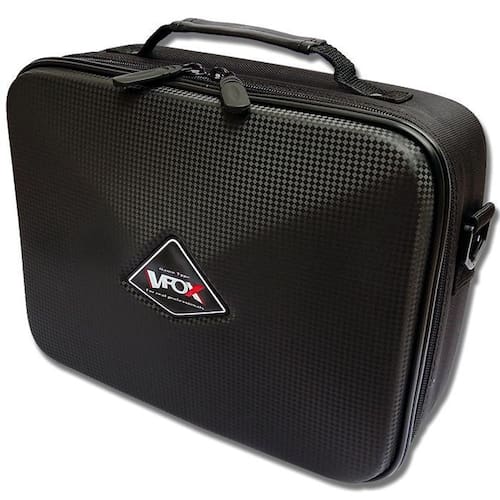 Bolsa maleta pesca multiuso v-fox ac-002 porta carretilha 6 divisões maleta em tecido de ótima qualidade, zíper reforçado com porta-cadeado, alça de mão e tiracolo. Bolsa super moderna se transforma em opção diferenciada feita para transportar e acomodar carretilhas, filmadoras, câmera entre outros. Ideal para os acessórios que exigem maior cuidado no transporte e armazenamento, semi-rígida laterais com suporte de fibra acolchoada material macio dando maior conforto aos equipamentos delicados. Em viagens estocagem ou mesmo durante as pescarias, proteção e segurança. - tecido de ótima qualidade. - material resistente. - zipers de altíssima qualidade. - 6 divisões internas removíveis e ajustáveis pois são presas com tiras aderentes. - semi rígida especificações: incluso: 1 bolsa e 1 alça para transporte dimensões externas cxlxa : 32cm x 24cm x 11cm dimensões internas cxlxa : 30cm x 22cm x 8cm peso: 670gr composição: poliéster, ferro e polipropileno cor: preto