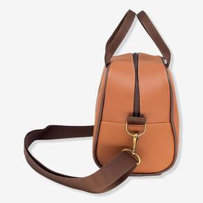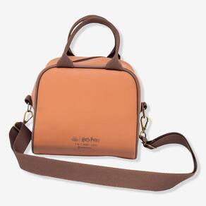 Apresentamos a elegante maleta térmica de Hogwarts, um acessório indispensável para os fãs de Harry Potter! Esta lancheira térmica combina estilo e funcionalidade. Confeccionada em material sintético de alta qualidade na cor caramelo com detalhes em marrom, apresenta o majestoso brasão de Hogwarts em dourado na parte frontal. O design retangular oferece um compartimento espaçoso, perfeito para armazenar alimentos e manter a temperatura. Possui alça de mão e alça transversal ajustável em fita marrom para maior versatilidade no transporte, além de fechamento em zíper para segurança do conteúdo. A lancheira é fácil de limpar - basta usar um pano úmido. Um produto oficial licenciado que traz toda a magia do mundo bruxo para seu dia a dia, ideal para escola, trabalho ou viagens.