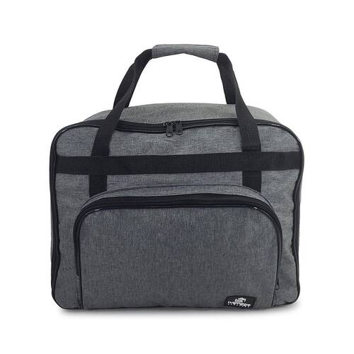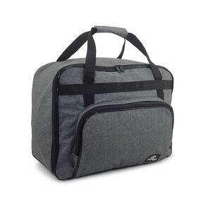 Bolsa maleta para transporte de máquina de costura portátil em material nylon com bolso frontal e fechamento em zípers. Possui fundo reforçado de madeira para transporte seguro.Alça retrátil