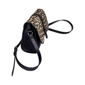 Bolsa modelo Valeria, confeccionada 100% em couro na cor preta e tampa em pelo com estampa de onça, com alça transversal, bolsinho interno , botão imã na tampa. Dimensões: 20cm x 16cm x 8cm. Marca: Não Informado