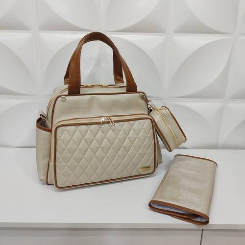 Bolsa Maternidade e Mini Trocador Marfim Caramelo - Coutre Bolsas