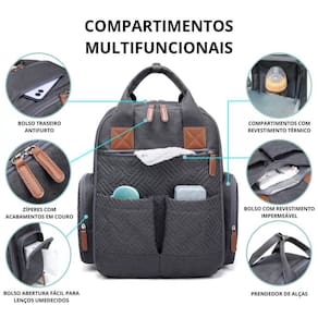 Carregue com você tudo o que precisa para o seu dia a dia com conforto e praticidade, ideal para levar os seus pertences de forma organizada. Produto de alta qualidade, sendo perfeita para complementar o visual e te acompanhar no dia a dia. Características: - Marca d'água em toda parte interna comprovando a originalidade - Abertura de um dos bolsos principais em até 180º - Bolso exclusivo para roupas molhadas com tecido especial - Suporte traseiro para poder colocar no puxador da mala de viagem - 4 camadas de tecidos Oxford em sua composição - Tratamento interno antibacteriano - Material Oxford impermeável - Compartimento térmico para 3 mamadeiras de até 240ml. - Divisória, a qual pode ser Utilizado para notebook - Bolso telado interno para separação dos itens do bebê -tecido Oxford durável de alta qualidade resistente à derramamento de líquidos externos e fácil de limpar Multi- - Esta mochila possuiu inúmeros bolsos internos e externos: - 6 bolsos de armazenamento interior - 8 bolsos externos - 3 bolsos para mamadeira frente - 1 bolso exclusivo para roupas molhadas ou que venham a sujar - 1 bolso porta lenço umedecido lateral - 1 bolso para garrafa de água lateral PADDED SHOULDER STRAPS - alças acolchoadas tornando a mochila confortável e evitar ferir os ombros Especificações técnicas Marca: Maternity Land Modelo: Joy Trocador portátil: Acompanha Gênero: Unissex Capacidade: 20 a 25L Cor: Preta Com bolso para notebook: Sim Material: Oxford Poliéster especial Tipo de fechamento: Zíper Dimensões: 44cm comprimento, 34cm largura, 20 a 25cm profundidade EM USO : 90 dias para defeitos de fabricação