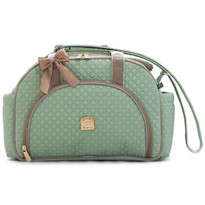 = exterior - fabricada em courino antialérgico externamente, material resistente, que não descasca e de fácil limpeza. - alças reforçadas com fita cadarço - alça tira-colo ombro - bolso frontal - bolso lateral dos dois lados da peça para facilitar o dia-a-dia - ampla abertura do compartimento principal proporcionado pela tampa central com dois cursores, o que facilita a organização e manuseios dos itens na bolsa. - ferragens em dourado - laço de cetim na alça.