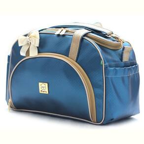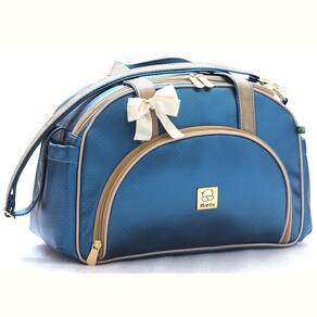 = exterior - fabricada em material sintético antialérgico externamente, material resistente, que não descasca e de fácil limpeza. - alças reforçadas com fita cadarço - alça tira-colo ombro com mosquetão fecho dourado de um dos lados, que possibilita retirada e acomodação no bolso lateral para evitar perdê-la. - bolso frontal - bolso lateral dos dois lados da peça para facilitar o dia-a-dia - ampla abertura do compartimento principal proporcionado pela tampa central com dois cursores, o que facilita a organização e manuseios dos itens na bolsa. - ferragens em dourado - laço de cetim na alça. = interior - internamente forrada em bagum e nylon branco, garantindo higiene, facilidade de limpeza e durabilidade, sem agregar peso a bolsa. - porta mamadeira térmico embutido, mais praticidade e proteção para a mamadeira - porta objetos no interior para facilitar a organização - bolso interno na tampa da abertura principal para cartões, chaves ou documentos
