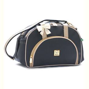 = exterior - fabricada em material sintético antialérgico externamente, material resistente, que não descasca e de fácil limpeza. - alças reforçadas com fita cadarço - alça tira-colo (ombro) com mosquetão (fecho) dourado de um dos lados, que possibilita retirada e acomodação no bolso lateral para evitar perdê-la. - bolso frontal - bolso lateral dos dois lados da peça para facilitar o dia-a-dia - ampla abertura do compartimento principal proporcionado pela tampa central com dois cursores, o que facilita a organização e manuseios dos itens na bolsa. - ferragens em dourado - laço de cetim na alça.