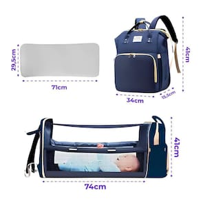 Inclui: - 1 Mochila Maternidade Expansível Impermeável Térmica. - 1 Tapete Trocador para troca de fraldas. - 2 Hastes para fixação do berço improvisado.
