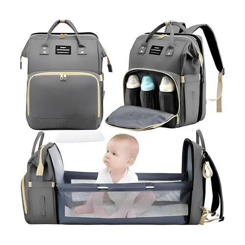 Inclui: - 1 Mochila Maternidade Expansível Impermeável Térmica. - 1 Tapete Trocador para troca de fraldas. - 2 Hastes para fixação do berço improvisado.