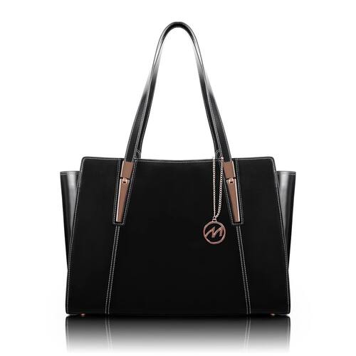 McKLEIN Bolsa feminina de couro com bolso para tablet - CRISTINA- preta