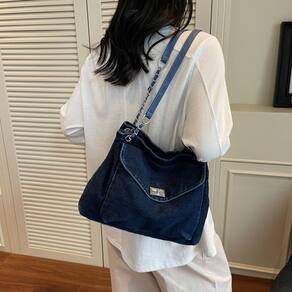 Material: jeans Tamanho: 32x10x25 cm Peso: 480 g Design chique e elegante: com um detalhe moderno de corrente e tecido jeans vintage, esta bolsa mensageiro combina um visual moderno com praticidade, perfeita para roupas casuais ou profissionais. Grande capacidade para itens essenciais: medindo 32x10x25 cm, esta bolsa espaçosa oferece amplo espaço para seus itens essenciais, como livros, laptop, carteira e outros itens diários, tornando-a perfeita para a escola ou o trabalho. Durável e confortável: feita de jeans de alta qualidade, esta bolsa é durável o suficiente para suportar o uso diário, mantendo uma sensação macia e confortável no corpo. Opções de transporte versáteis: com uma alça de ombro ajustável e alças superiores, esta bolsa pode ser usada como tiracolo, bolsa de ombro ou carregada à mão, oferecendo máxima flexibilidade e conforto. Ideal para estudantes e profissionais: se você está indo para a aula, indo para o trabalho ou saindo para um passeio de fim de semana, esta bolsa elegante e de grande capacidade é um acessório perfeito para manter seus itens essenciais organizados e de fácil acesso.