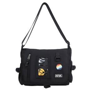 Material: tela Tamanho: 31 x 12 x 25 cm Peso: 490 g Design inspirado em roupas de rua: combina elementos de rua japoneses e coreanos com uma aparência funcional de roupa de trabalho, aprimorada por emblemas decorativos e um bolso de identificação transparente. Espaçosa e funcional: medindo 31x12x25cm, esta bolsa mensageiro oferece amplo armazenamento para tablets, notebooks e acessórios diários, ideal para viagens escolares ou urbanas. Unissex e versátil: projetado para homens e mulheres, adequado para viagens urbanas, universitárias ou passeios casuais com seu estilo neutro moderno. Material de lona durável: feito de lona grossa para maior durabilidade e estrutura, mantendo um peso confortável de 490 g para transporte diário. Ajustável para maior conforto: a alça de ombro larga e ajustável garante um ajuste personalizado, permitindo transições fáceis entre o uso no ombro e na tiracolo.