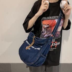 Material: jeans Tamanho: 43x15x33cm Peso: 310gDesign espaçoso e prático: com um tamanho generoso de 43x15x33 cm, esta grande bolsa jeans oferece amplo espaço para transportar livros, gadgets e itens pessoais, tornando-a ideal para estudantes, viajantes ou qualquer pessoa que precise de espaço extra. Aparência elegante e casual: com uma estética moderna e descontraída com detalhes estampados e material jeans, esta bolsa mensageiro adiciona um toque moderno ao seu guarda-roupa casual, oferecendo armazenamento funcional. Tecido jeans durável: feita de jeans de alta qualidade, esta bolsa não é apenas durável, mas também leve, oferecendo uma solução confortável e duradoura para o transporte diário. Versátil e ajustável: a alça de ombro ajustável permite que você use esta bolsa como uma bolsa tiracolo ou de ombro, garantindo conforto e flexibilidade para uso durante todo o dia. Ideal para estudantes e uso diário: se você está indo para a aula, trabalhando ou fazendo recados, o design espaçoso e o estilo moderno desta bolsa a tornam perfeita para passeios escolares e casuais.