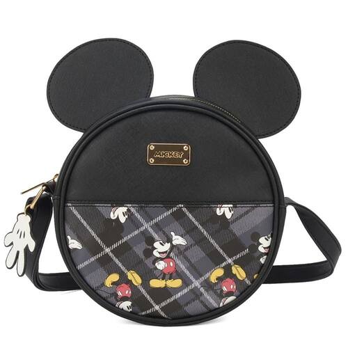 Bolsa mickey orelhas bmk78595 redonda pequena xadrez cor: preto bolsa mickey alça transversal bmk78595