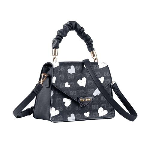 Produzida com a qualidade da marca Semax, essa bolsa é confeccionada em um mix de PVC com textura e liso, proporcionando durabilidade e resistência. Seu detalhe frontal é texturizado com estampa monograma bp, trazendo um toque de sofisticação. Além disso, possui aplicação de silk de corações e metais em light gold, que adicionam um toque de delicadeza ao design.
