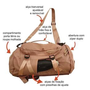 Bolsa Mochila De Viagem VE10410 Cor: salmao - Compartimentos inteligentes para separar todas as suas necessidades - Abertura principal com zíper dupo e cobertura nos zíperes - Compartimento exclusivo para armazenar tênis, roupas molhadas ou outras necessidades - Bolso frontal generoso com zíper - Bolsos laterais com cintas de fixação e presilhas de ajuste - Bolso traseiro para armanzenar as alças em caso de utilizar como transversal ou mala de mão - Alças de costas acolchoadas, ajustáveis sendo possível armazenar no bolso traseiro para opção como Mala de Mão ou Tiracolo - Alça de mão fixa e confortável - Alça transversal ajustável e removível Tamanho Aproximado em cm: AxLxP 48x27z18