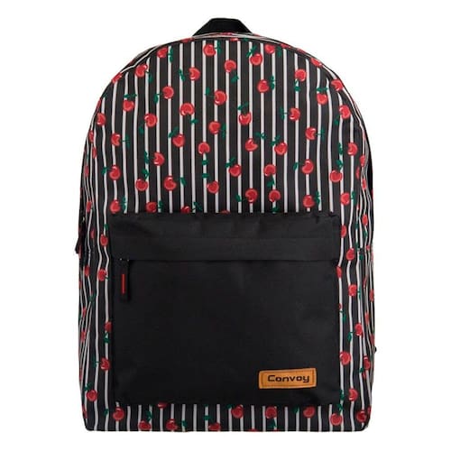 Bolsa Mochila Escolar Preto & Branco com Cereja Feminina -