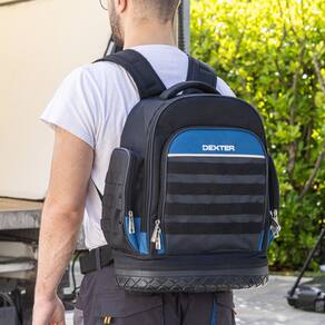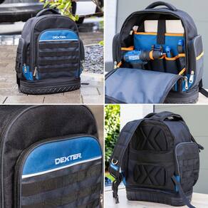 Resumo das caracteristicas e especificacoes: Mochila para Ferramentas Dexter LT0011, uso indicado para ombro, tipo de caixa de ferramentas simples, dimensoes de 37 x 19 x 43 cm, feita de tecido poliester, capacidade de 10 Kg, cor preta, alca embutida de tecido, possui organizador, acompanha embalagem tipo caixa com 1 Mochila para Ferramentas, garantia do fabricante de 60 meses, referencia do produto 2025R04P04-0011.