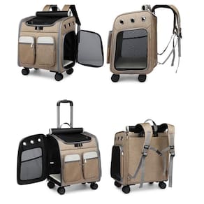 Bolsa Mochila Transporte Pet Com Rodinhas Cães Gatos Luxo Cor: Marrom Bolsa e mochila de transporte pet luxo com rodinhas perfeita para cães e gatos. Essa linda mochila pet pode ser usada como mochila ou pode ser transportada com rodinhas como mala de mão, o que a torna mais prática de carregar. Suas viagens e passeios com seu pet ficam ainda mais tranquilas e confortáveis.