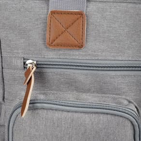 Compartimentos externos: 2 bolsos laterais, 3 bolsos frontais com zíper, 1 bolso com para lenços umedecidos