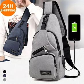 Bolsa de Ombro Masculina Mochila Anti-Roubo de Ombro com Entrada para Carregador Usb Mensageiro Cor: Cinza Características: