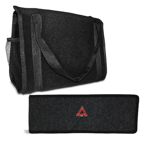 BOLSA ORGANIZADORA PORTA MALAS UNIVERSAL + CAPA PORTA TRIÂNGULO DE SINALIZAÇÃO CARPETE PRETO AUTOMOTIVO