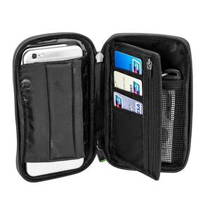 Segurança e praticidade: a Bolsa Rockbros traz consigo zíperes impermeáveis e duplos, uma saída para fone de ouvido e uma pala de sol, que ajuda na visualização da tela de seu aparelho.
