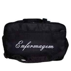 Bolsa para enfermagem com alça de mão e ombro cor preta Bolsa escrito enfermagem em duratram. Ela possui dois bolsos sendo um na parte frontal e outro na parte superior para melhor distribuição e separação dos materiais. Ela contém alça de mão e ombro se tornando bem versátil para o dia dia e pratica para estudantes e profissionais da area de saúde.