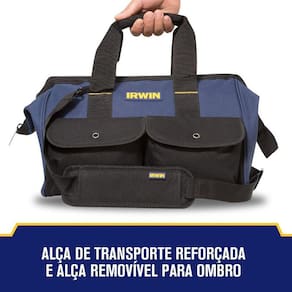 Bolsa para Ferramentas 300mm 12 Pol. Eletricista Reforçada Profissional Irwin- Marca: Irwin- Referência: 1870405- Comprimento: 30,5cm- Largura: 20,5cm- Altura: 20,0cm- Produzida com poliéster reforçado em trama 600 fios para maior durabilidade e conforto- Grande abertura do compartimento principal com zíper reforçado- Costura reforçada nas áreas de grande desgaste- Grande bolso externo para maior capacidade de armazenamento- Alça para ombro ajustável e emborrachada- 03 bolsos pequenos internos- Alça reforçada para facilitar o transporte- Compartimentos e Bolsos Externos: 01- Compartimentos e Bolsos Internos: 03- Malas, mochilas, caixas e carrinhos IRWIN foram projetados para oferecer excelentes soluções para cada tipo de trabalho. Elas organizam ferramentas e facilitam o transporte, além de aumentar a produtividade.- No seu dia-a-dia, o profissional precisa contar com produtos que facilitem seu trabalho, locomoção e segurança. A linha de armazenagem, transporte e acessórios IRWIN foi projetada especialmente para oferecer praticidade e agilidade ao profissional e suas ferramentas.- Produzidas em poliéster resistente de 600 fios, possuem diversos compartimentos e bolsos para melhor organização e acesso às ferramentas. Os diferentes formatos e acabamentos atendem às necessidades de todo tipo de profissional.- Peso: 870g- Garantia: 90 dias