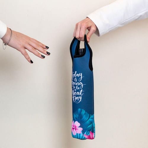Super delicada e resistente, a Bolsa para Vinho Great Day é para os que sempre levam uma garrafa de bebida para jantares e encontros. rnrnA estampa floral e a cor azul dão um toque de leveza para a bolsa. A alça proporciona mais na hora de carregá-la e o material garante que a garrafa chegará gelada no . rn