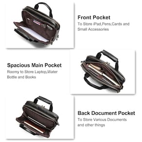 Dimensão e material 16,5 13,2 5 polegadas, 41 x 33 x de peso 3,0 lb, 1,36 kg A pasta masculina é feita de couro de alta qualidade para ser elegante, profissional e de aparência profissional com grande capacidade. O cinto na parte de trás da bolsa mensageiro de negócios dos homens pode ser facilmente encaixado no carrinho de bagagem, trazendo conforto para viagens de negócios e viagens. Multifunções Esta pasta para homem tem três bolsos principais com funções diferentes, um bolso traseiro para documentos, um bolso central para laptop e um bolso frontal multifuncional para atender todas as suas necessidades de negócios. O bolso frontal da pasta de couro tem um design especial, 2 bolsos pequenos, 3 porta canetas e 4 porta cartões para ser mais funcional. Alças removíveis de atualização A alça de malas para laptop de computador para homens tem 2 fivelas ajustáveis para manter a almofada no lugar certo de seu ombro para que você se sinta confortável. Você pode usá lo como uma pasta de homem, uma bolsa de ombro e uma bolsa crossbody de acordo com suas preferências. Durável e à prova dágua A bolsa de mensageiro para laptop é forro de tecido durável e as partes de metal são feitas de bronze. A parte de metal torna a pasta mais durável para suportar mais peso. O couro à prova dágua pode ser com mau tempo, sempre que você levar coisas importantes para sair Marca: Não Informado