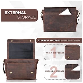 criado para associado e espaço extra. A bolsa tem três bolsos. Dois bolsos pequenos na frente e atrás, um bolso grande principal. Os pequenos bolsos podem facilmente acomodar um iPad e outros itens essenciais. O bolso principal tem uma bolsa de suporte para celular e um suporte para notas, carteira. Ele tem um suporte portátil para um portátil com 15 polegadas, de forma fácil e estável.