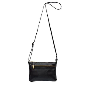Bolsa Transversal em Couro Feminina Pequena com Bolsinho Externo e Interno Metais Dourados Marca Madamix.