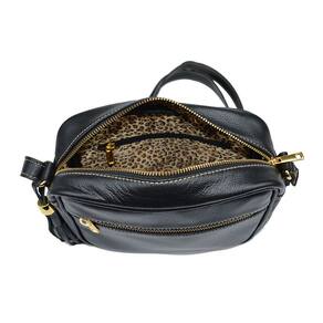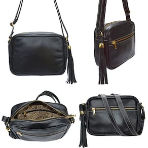 Bolsa transversal feminina, pequena, charmosa, prática com alça transversal comprida confortável de 2 cm de largura e comprimento regulável de 70 cm a 150 cm para um ajuste de acordo com sua altura corporal. Muito prática, ideal para o dia a dia, lazer ou levar naquela viagem que precise carregar seus objetos com segurança e comodidade. Embora pequena possui um bom espaço interno e permite carregar carteiras, maquiagem, celular grande, chaves, documentos pessoais, etc. Na parte frontal possui 1 bolso fechado por zíper para pequenos objetos. Todos os metais são na cor dourada com banho antioxidante para combinar com a sofisticação e elegância que um produto em couro merece. O acabamento interno é com forro com texturas variadas tipo animal print (padrão oncinha), floral ou similar. Possui um bolsinho interno fechado com zíper para pequenos objetos ou celular. O fechamento da parte superior é feito por zíper de metal dourado. Possui um lindo enfeite lateral de franja em couro com metal dourado.