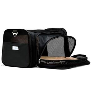 Dimensões da Bolsa: 44,5cm X 25,4cm X 25,4cm, Expansível até 73,66cm. Dimensões do Tapete: 43,18 cm X 24,13cm Características do Produto: - Confeccionada nas especificações para embarque na cabine de aviões da maioria das companhias aeras. - Acomoda confortavelmente pets de até 14 kg; - Aberturas frontal e lateral que facilitam a entrada e saída do Pet; - Fundo interno rígido removível, fácil de higienizar; - Alta qualidade de fabricação e detalhe; - Super arejada, confeccionada com tela de alta resistência nas laterais e topo; - Totalmente dobrável e fácil de guardar.