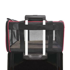 Bolsa transpote para pet viagem duke & dixie A bolsa pet é confeccionada em material resistente; costura de alta qualidade com zíperes no acabamento. Suas abas laterais em tela fornecem uma ventilação saudável para o animal e permite manter contato visual com seu pet. Acompanha um tapete macio para garantir o transporte no conforto ideal Carregue o seu pet facilmente pelas alças curtas ou pendure no ombro com a alça comprida. e se preferir encaixe na mala de mão de forma conveniente durante sua viagem